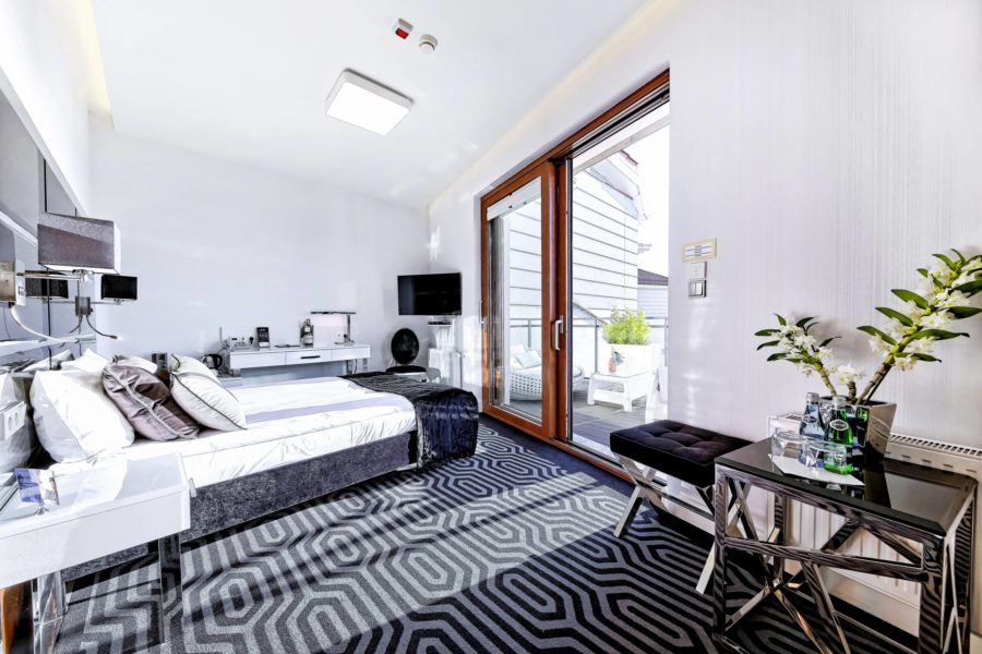 Naszym Gościom proponujemy świetnie zaaranżowany pokój z kategorii LUX PREMIUM TERRACE o łącznej powierzchni 18 metrów kwadratowych wraz z łazienką.